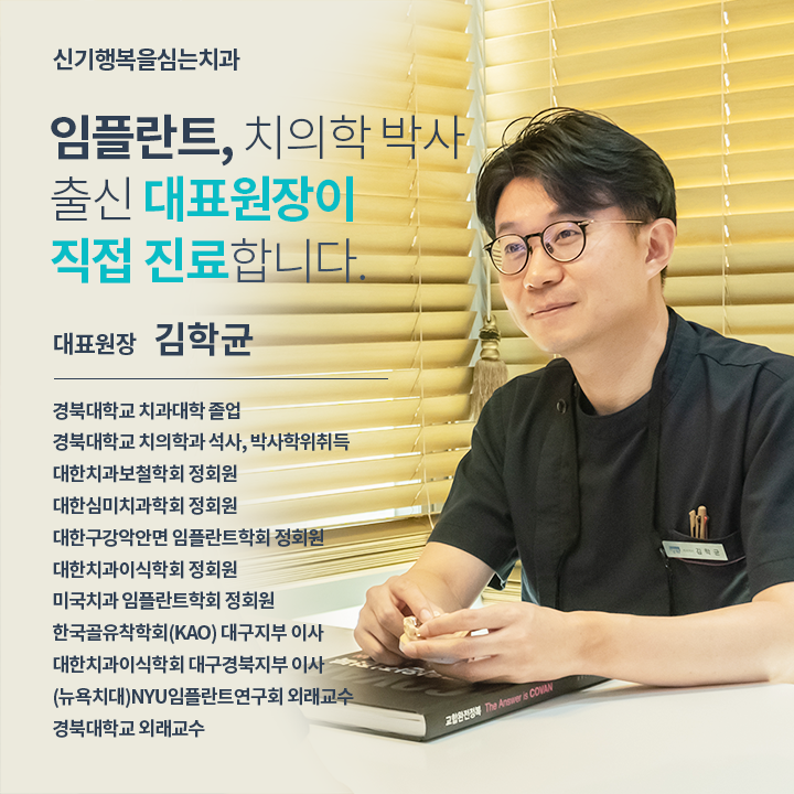 2003년 5월, 대구 신기동에서 치과를 개원한 이래로 현재까지 신기 행복을 심는 치과를 운영해온 김학균 원장입니다.